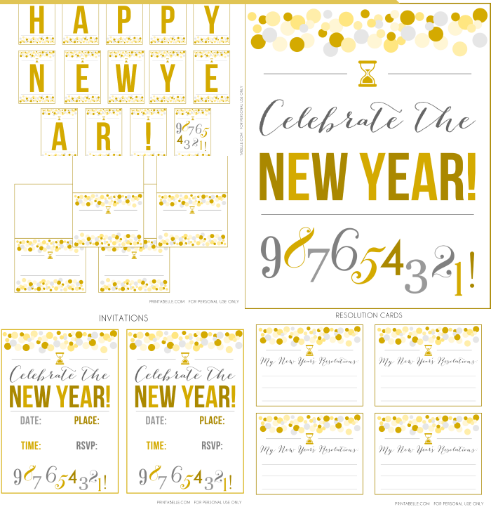 This gold, silver and white New Year's Eve party printable set has everything you need for a fun celebration!